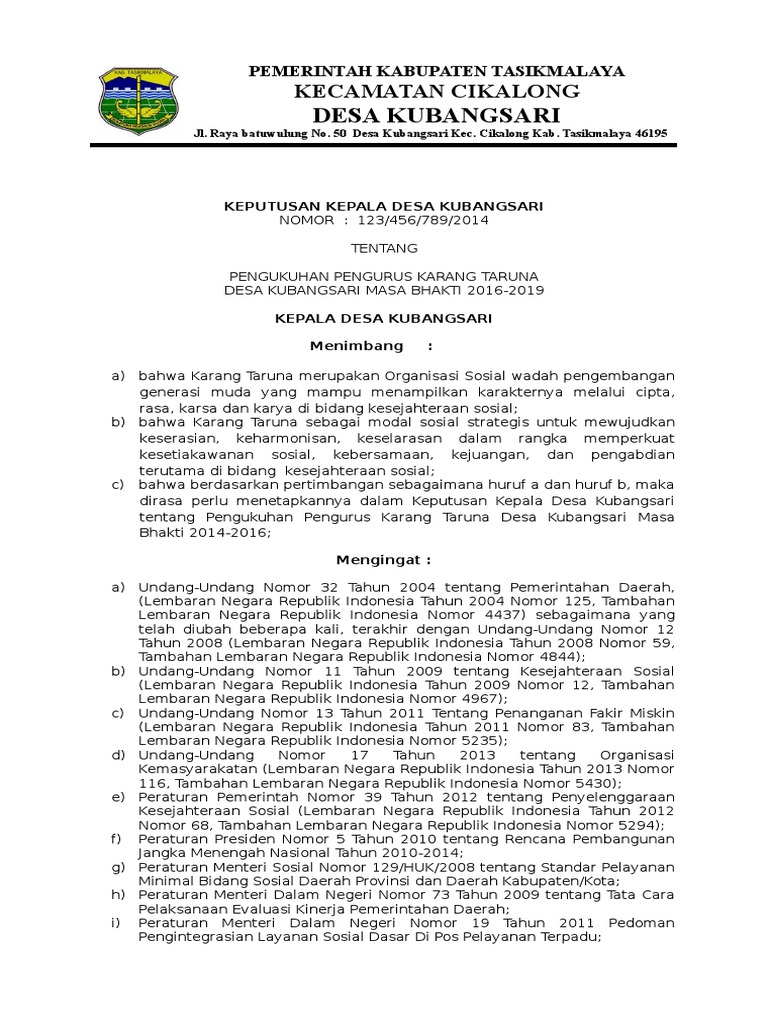 Sk Karang Taruna Kecamatan 2020 / Contoh Struktur Pengurus Karang Taruna Desa : We did not find results for:. Maybe you would like to learn more about one of these? We did not find results for: Check spelling or type a new query. Sk karang taruna kecamatan 2020.